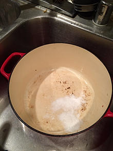 Step 1: Get your pot/pan wet, (don’t put much water in here, the key is to make a paste) and pour a tablespoon or two of baking soda at the bottom.